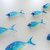 Cardumen de peces hechos en cristal pintado a mano. Este cardumen brillará desde tu pared.